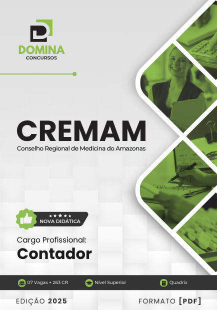 1 Legislação: 1.1 Constituição Federal de 1988 (Título VI – Da Tributação e do Orçamento). 1.2 Lei nº 4.320/1964 (Normas Gerais de Direito Financeiro). 1.3 Lei Complementar nº 101/2000 (Lei de Responsabilidade Fiscal). 1.4 Lei nº 14.133/2021 (Lei de Licitações e Contratos Administrativos). 1.5 Lei nº 11.941/2009 (alterações na Legislação Tributária e Contábil). 1.6 Decreto-Lei nº 200/1967 (Organização da Administração Federal). 2 Contabilidade Aplicada ao Setor Público: 2.1 Normas Brasileiras de Contabilidade Aplicadas ao Setor Público (NBC TSP). 2.2 Manual de Contabilidade Aplicada ao Setor Público (MCASP). 2.3 Plano de Contas Aplicado ao Setor Público (PCASP). 2.4 Demonstrações Contábeis Aplicadas ao Setor Público (DCASP). 2.5 Sistema orçamentário, financeiro, patrimonial e de compensação. 2.6 A qualidade da informação da Contabilidade Pública no Brasil. 3 Orçamento Público: 3.1 Princípios orçamentários. 3.2 Ciclo orçamentário. 3.3 Plano Plurianual (PPA), Lei de Diretrizes Orçamentárias (LDO) e Lei Orçamentária Anual (LOA). 3.4 Classificações orçamentárias da receita e da despesa. 3.5 Créditos adicionais e alterações orçamentárias. 3.6 Programação e execução orçamentária. 4 Execução Orçamentária e Financeira: 4.1 Programação e execução orçamentária e financeira. 4.2 Estágios da receita e da despesa pública. 4.3 Restos a pagar e despesas de exercícios anteriores. 4.4 Suprimento de fundos. 4.5 Programação financeira e cronograma de desembolso. 4.6 Contingenciamentos. 5 Contabilidade Geral: 5.1 Princípios de contabilidade. 5.2 Estrutura conceitual da contabilidade. 5.3 Patrimônio: componentes patrimoniais, ativo, passivo e patrimônio líquido. 5.4 Fatos contábeis e variações patrimoniais. 5.5 Pronunciamentos do Comitê de Pronunciamentos Contábeis (CPC). 5.6 Adequação às IFRS. 6 Demonstrações Contábeis: 6.1 Balanço patrimonial. 6.2 Demonstração do resultado do exercício. 6.3 Demonstração dos fluxos de caixa. 6.4 Demonstração das mutações do patrimônio líquido. 6.5 Demonstração do valor adicionado. 6.6 Notas explicativas. 6.7 Balanços orçamentário, financeiro e patrimonial. 7 Análise das Demonstrações Contábeis: 7.1 Análise vertical e horizontal. 7.2 Índices de liquidez, endividamento e rentabilidade. 7.3 Análise do capital de giro. 7.4 Indicadores de desempenho. 7.5 Análise financeira e gerencial. 7.6 Alavancagem financeira e operacional. 7.7 Análise do ponto de equilíbrio. 8 Contabilidade aplicada aos Conselhos Profissionais: 8.1 Estrutura e funcionamento dos Conselhos de Fiscalização Profissional. 8.2 Particularidades contábeis dos Conselhos de Medicina. 8.3 Normas específicas do Conselho Federal de Medicina para a contabilidade dos CRMs. 8.4 Anuidades, taxas e emolumentos. 8.5 Controle e registro contábil das receitas. 9 Gestão Patrimonial: 9.1 Registro e controle de bens patrimoniais. 9.2 Métodos de depreciação, amortização e exaustão. 9.3 Reavaliação e redução ao valor recuperável. 9.4 Inventário físico e controle. 9.5 Alienação de bens. 10 Gestão Tributária: 10.1 Retenções tributárias (IRRF, PIS, COFINS, CSLL, ISS). 10.2 Obrigações acessórias (DCTF, EFD-Reinf, DIRF, GFIP). 10.3 Tributação aplicável aos Conselhos de Fiscalização Profissional. 10.4 Imunidade tributária dos conselhos profissionais. 10.5 Planejamento tributário. 11 Folha de Pagamento e Encargos: 11.1 Cálculos trabalhistas e previdenciários. 11.2 eSocial. 11.3 Provisões trabalhistas. 11.4 Férias, 13º salário e rescisões. 11.5 Encargos sociais e previdenciários. 12 Auditoria e Controle Interno: 12.1 Conceitos e princípios de auditoria. 12.2 Controles internos: conceitos, elementos e objetivos. 12.3 Técnicas e procedimentos de auditoria. 12.4 Auditoria no setor público e em conselhos profissionais. 12.5 Gestão de riscos e governança. 13 Prestação de Contas e Transparência: 13.1 Relatório de Gestão para o TCU. 13.2 Prestação de contas ao Conselho Federal de Medicina. 13.3 Portal da Transparência. 13.4 Lei de Acesso à Informação. 13.5 Relatórios gerenciais e de prestação de contas. 14 Gestão Financeira e Fluxo de Caixa: 14.1 Programação financeira. 14.2 Conciliação bancária. 14.3 Gestão de contas a pagar e receber. 14.4 Análise e projeção de fluxo de caixa. 14.5 Controle de movimentação bancária. 15 Cobrança e Dívida Ativa: 15.1 Procedimentos de cobrança administrativa. 15.2 Inscrição em dívida ativa. 15.3 Controle e acompanhamento de débitos. 15.4 Parcelamento de débitos. 15.5 Prescrição e decadência.